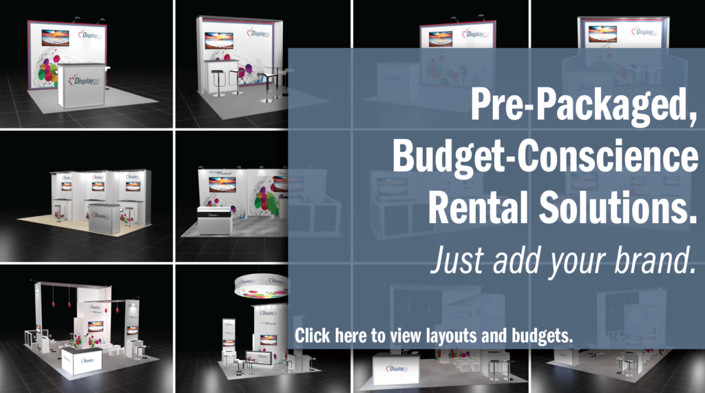 From multi-show use to one-time rental packages, Displayco has budget-conscience options to meet all your exhibit needs. We have a large selection of standard modular rental solutions that can be customized with your graphics and branding. Here are a sample of the cost effective, modern designed, modular rental solutions Displayco has to offer:
